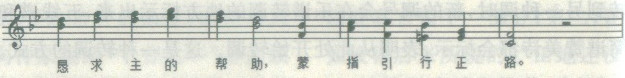 在赞美诗乐曲的结束处,出现从原调转到其他调的转调,新的调最后得到充分的巩固和肯定。比如从F调转为降A调,这种转调称为过渡转调。